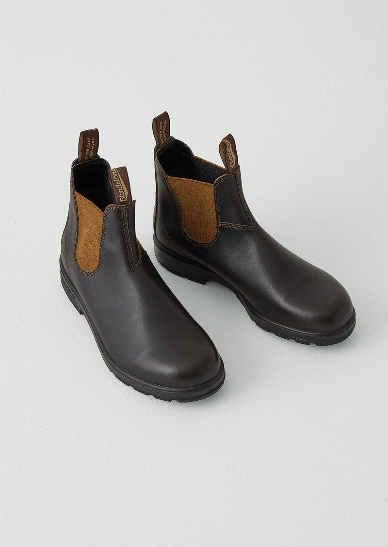 Practical Chelsea boots crafted by Blundstone, an Australian shoemaker which traces its heritage back to 1870. Made from water-resistant leather, designed with pull tabs and a tread sole.