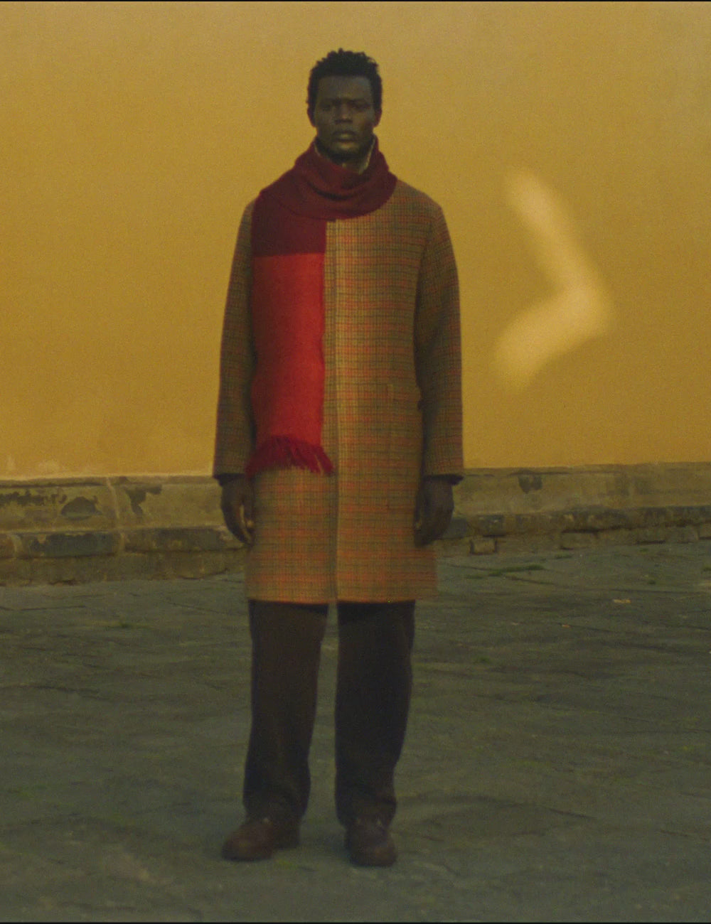 Our scarf is woven from a soft wool and cashmere blend. Featuring a two tone chevron pattern with a contrast panel. Finished with twisted tassels.