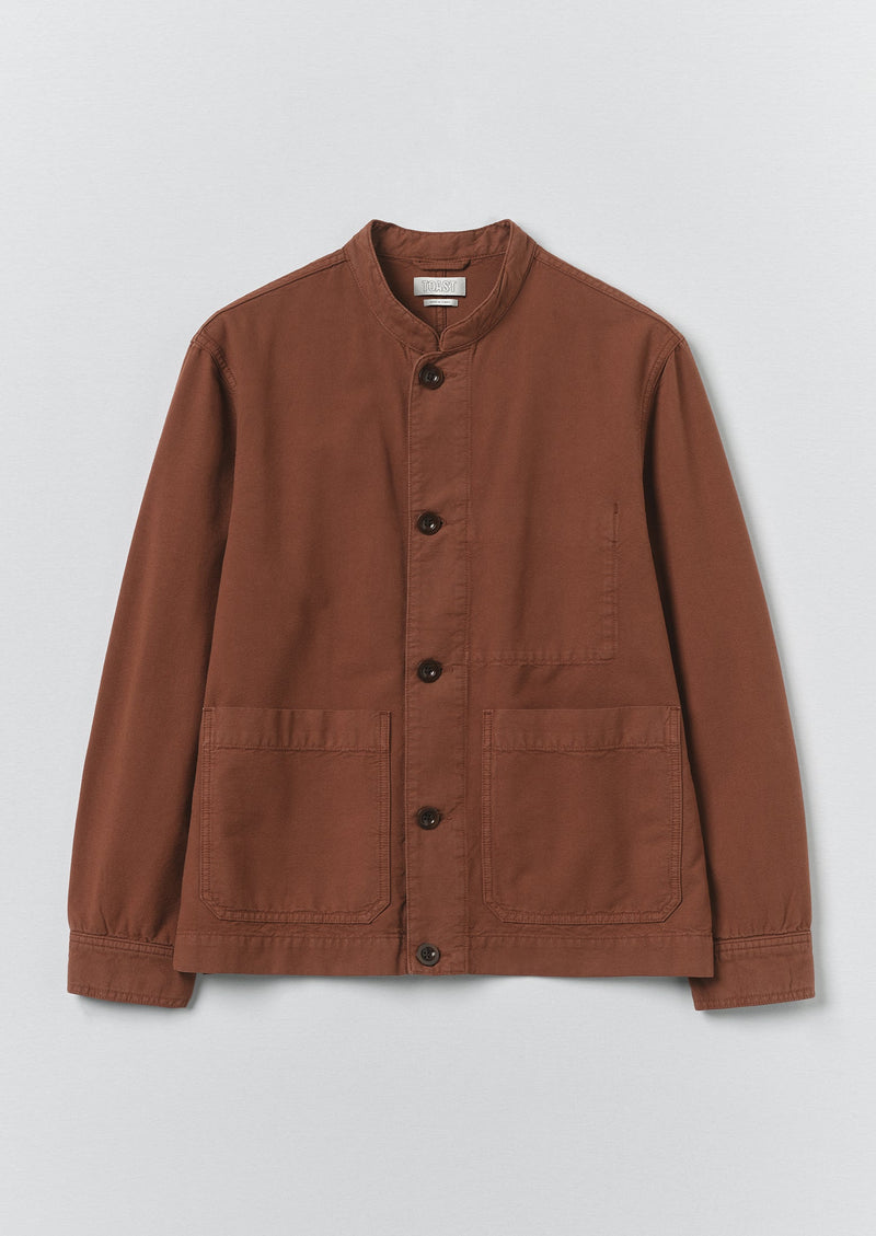 Garment-dyed organic cotton canvas gives depth of tone to our stand-collar jacket. Cut to an easy shape with side patch pockets and an internal pocket. Part of our Menswear collection.