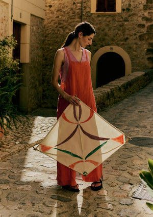 Linen. Garment-dyed. Square neck. Wide legs. Corozo buttons. Side button opening.