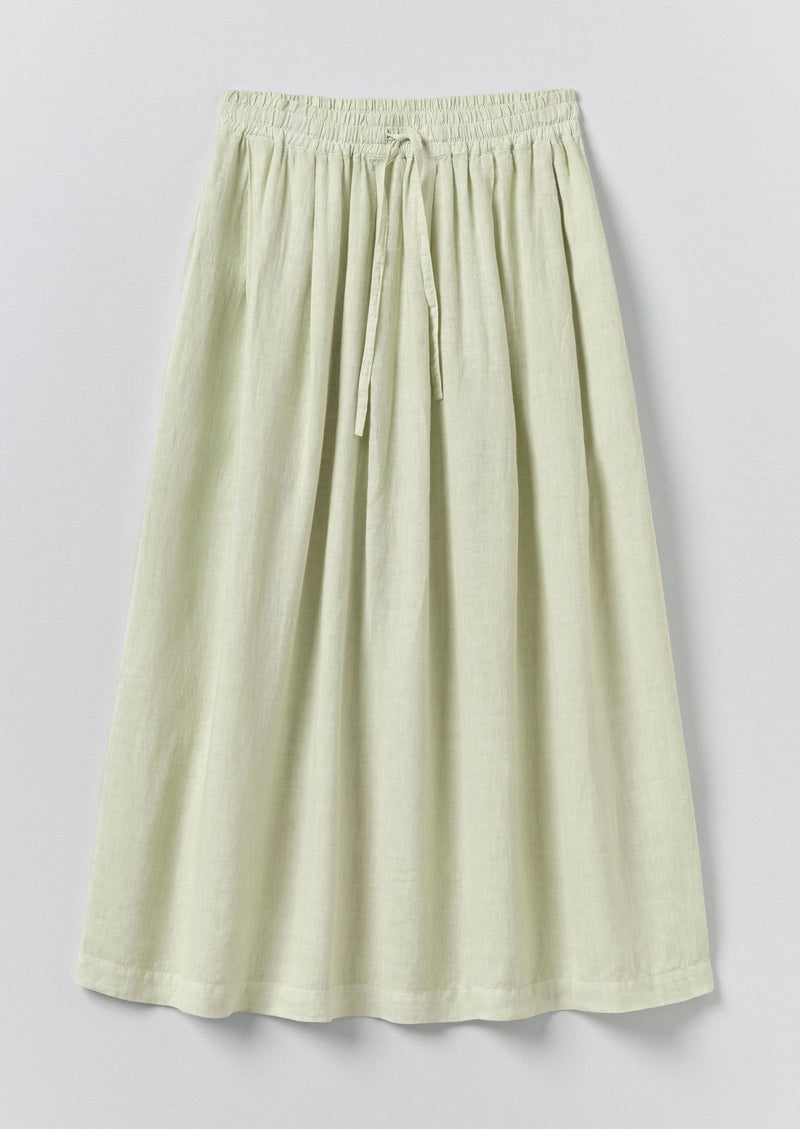 Our skirt is garment-dyed and features an elasticated waist and draw cord for adjustable wear. Cut to an easy shape, it has pockets at the side seam and lower calf length.